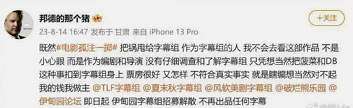 字幕组宣布解散起因居然是正在热映的电影《孤注一掷》