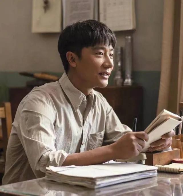 第二场戏是他作为刘秘书去前线送物资,并且传达志愿军总部的命令。他见到钢七连战士伍万里(易烊千玺饰演)正在写检讨,于是,从衣袋里掏出钢笔给他,伍万里抬起头看着这位大哥哥一样的首长。