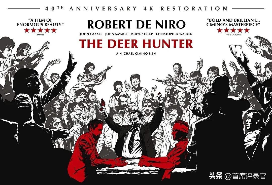 尼克则因战争的刺激,精神崩溃,留在了越南,沉浸在过去的阴影中无法自拔,最终选择用俄罗斯轮盘结束自己的生命。