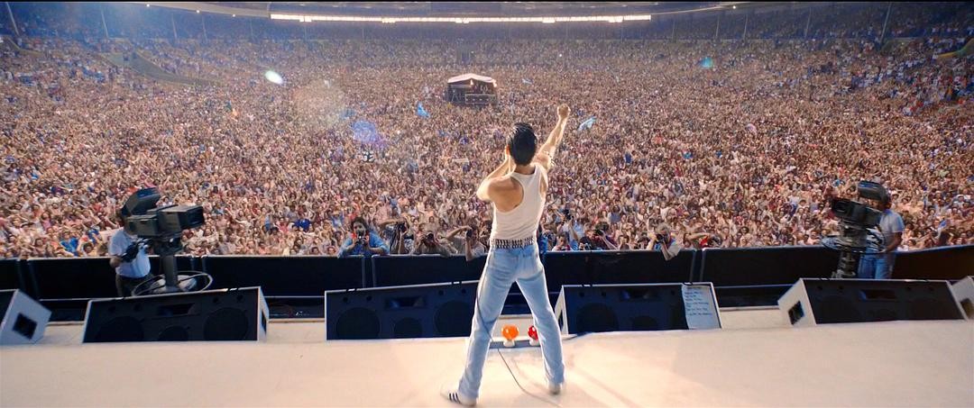 也是在那二十分钟的的演出里,导演高度还原了音乐史上最伟大的“拯救生命”大型摇滚乐演唱会上,让观众仿佛置身于那个狂热的现场,仰望着弗雷迪·莫库里将所有热血付诸于歌声。