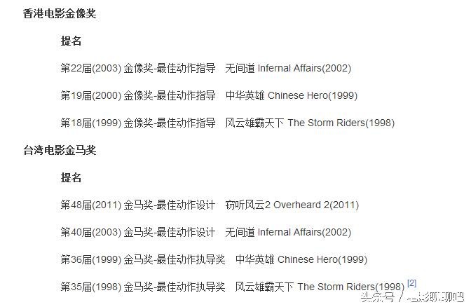 林迪安也凭《无间道》,被提名为第22届(2003)香港 金像奖-最佳动作指导。