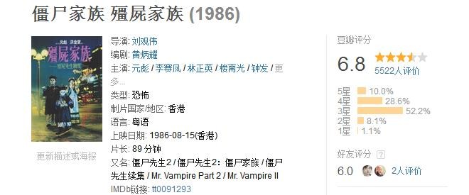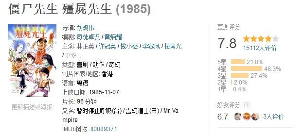 又是一部英叔的作品,喜欢没办法,谁让这么经典呢?相比以往的僵尸片这一步是大战西洋僵尸,新意十足,小时候看的我好怕,现在再看其实很搞笑。