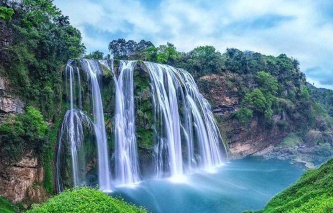 这水帘洞是处在半山腰险崖绝壁上的山洞,因出现金光闪现才引领众猴前往探寻,洞口被水帘遮盖,瀑布飞流直泻而下,飞花溅玉,尤如白虹叠雪,激起千层涌浪。