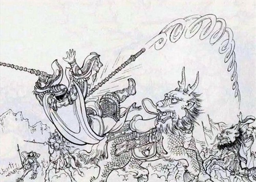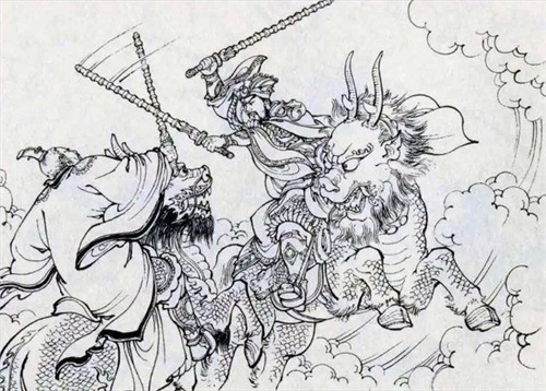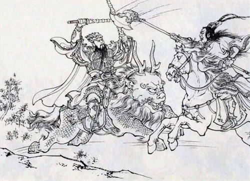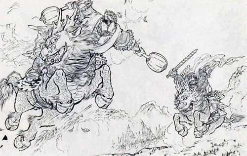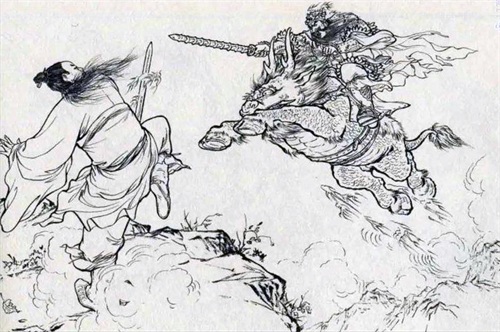两军再战。闻太师和姜子牙各不答话,二兽相交,鞭剑并举,战在一处。酣战之际,闻太师又把雌雄鞭起在空中,姜子牙也祭起打神鞭。打神鞭是玉虚宫元始天尊所赐,打得了八部正神。闻太师的鞭往下打,姜子牙的鞭往上迎,鞭打鞭,把闻太师雌鞭打为两断,落在尘埃。闻太师大怒,姜子牙又祭起打神鞭,将闻太师打下了墨麒麟,闻太师借土遁而走。