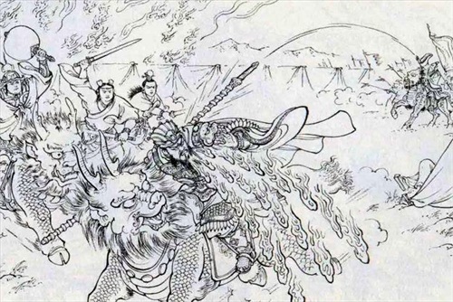 闻太师兵临西岐城下,两军摆开了战场。闻太师催墨麒麟,使两条金鞭,冲杀过来,姜子牙催四不相迎战。闻太师的神鞭乃是两条蛟龙化成,双鞭按阴阳,分二气,有风雷之声,甚是厉害,姜子牙不敌。闻太师举起雄鞭飞在空中,姜子牙被打落下鞍桥。哪吒挺枪来救,与闻太师战了三五个回合,也被闻太师的神鞭打下风火轮来。金吒赶来,用宝剑架住金鞭,救了哪吒。闻太师连发双鞭,雌雄不定,或起或落,连打金吒、木吒,又打韩毒龙。杨戬见闻太师的神鞭打得周将落花流水,挺枪朝闻太师刺来,闻太师举鞭迎战。战了几个回合,闻太师又祭起双鞭,正中杨戬的顶门,只打得火星迸出,杨戬全然不理,好像没事人一样。闻太师大惊。陶荣取出聚风旛,连摇数摇,霎时间飞沙走石,只打得周军如风卷残云一般,败回城去。