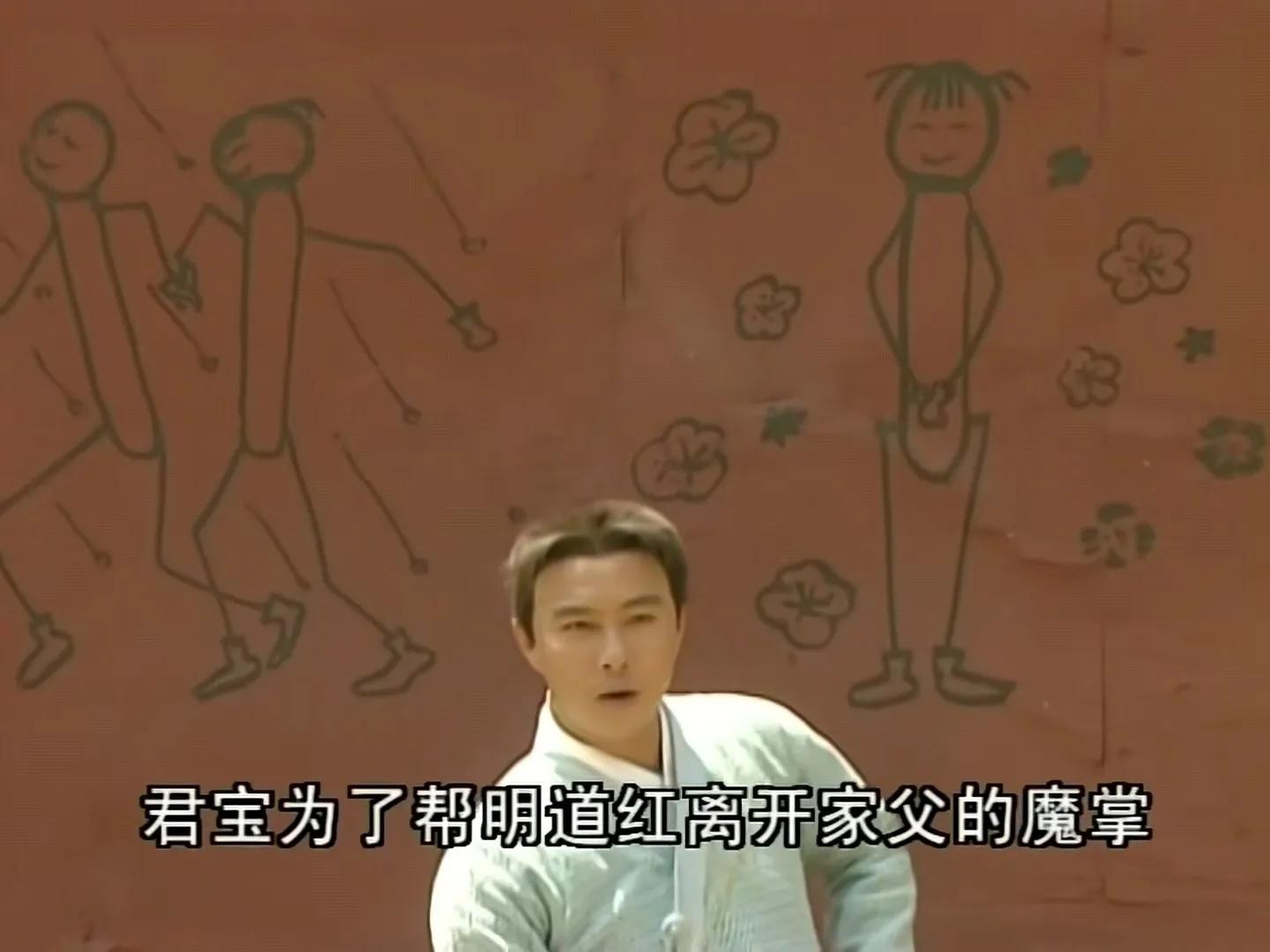 明道红死后,张君宝在院内静坐了一夜,面前的墙上是他画给明道红的画。