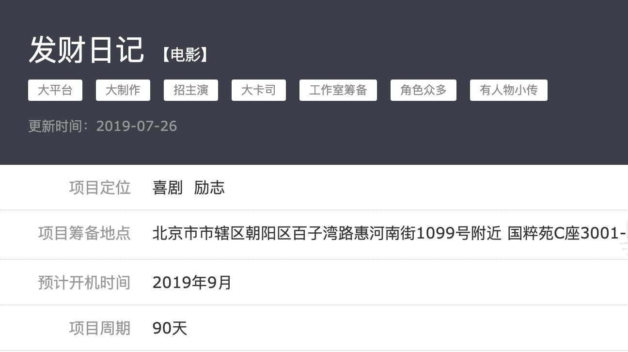 这句发出来,就是标志着电影《发财日记》开始启动,历经两年剧本打磨,演员磨合,在2019年电影开拍了。