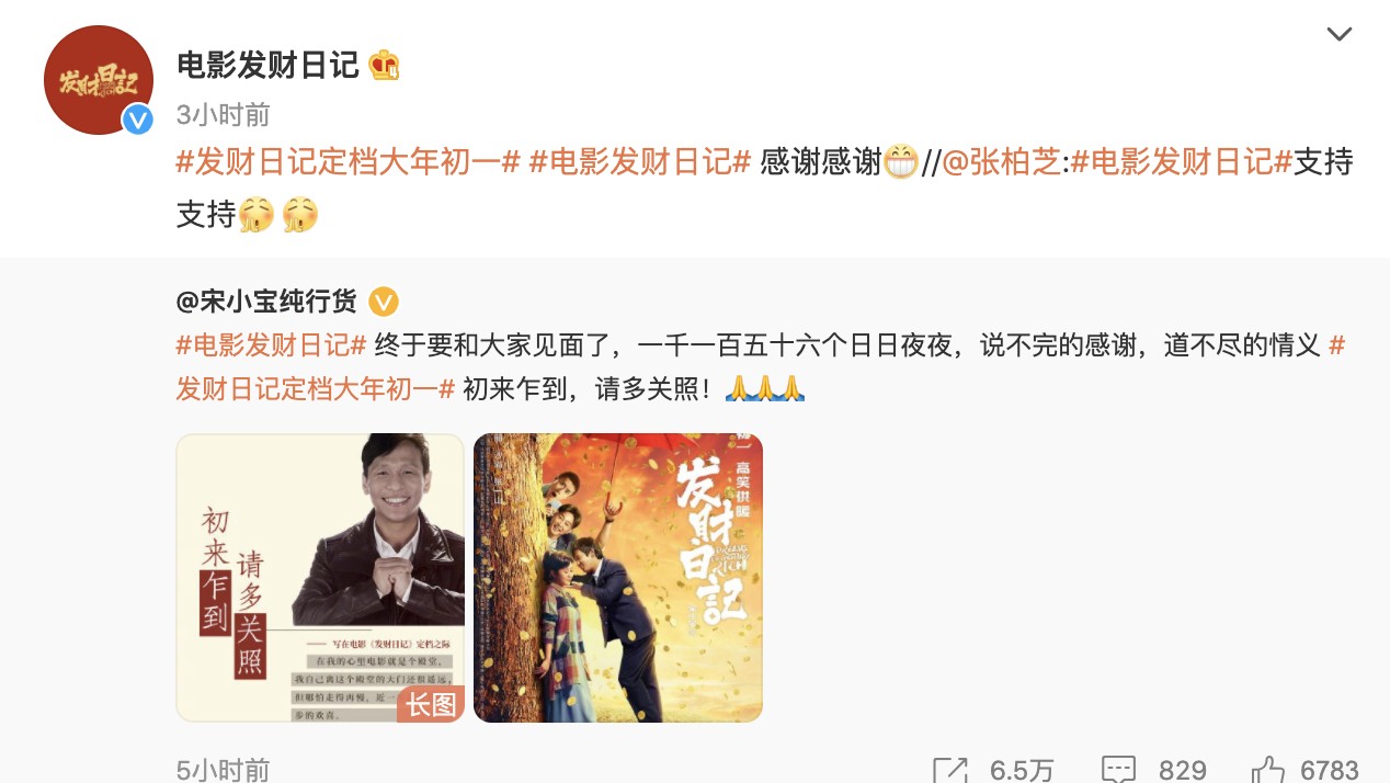 而宋小宝执导的《发财日记》则尽量低调,且原因是在网播平台上映,宣发内容几乎没有。