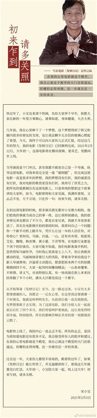 当宋小宝得知观众带有惴惴不安的心情时,自己亲自发出长文自述了一下自己拍这部电影的心路历程。