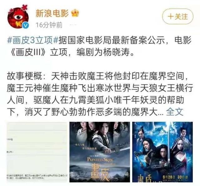 根据国家电影局最新备案公示,电影《画皮3》立项了,这一系列时隔9年,终于要和大家再次见面了,这让不少《画皮3》系列的影迷已经纷纷激动地开始跳脚了。