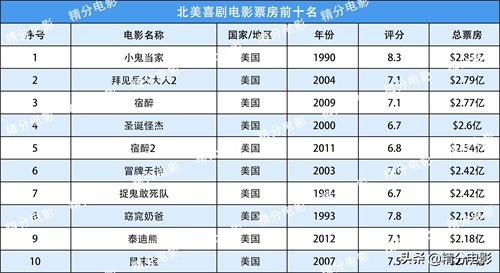 北美电影票房总排行,最卖座喜剧电影前10名,电影票房数据
