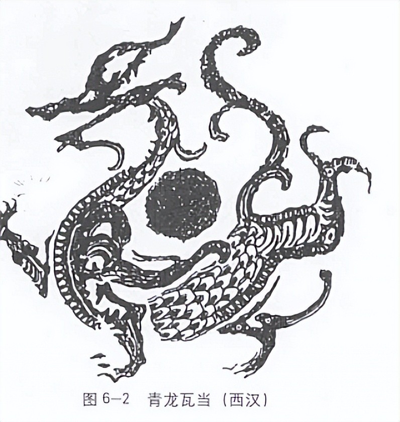 在古人将东七宿组合想象成为龙形象后,又按阴阳五行给五方配色之说,因位于东方主木,代表色为“青”,故名“青龙”,从而衍生成具象化的兽类形态,呈为青色(苍色)之龙。根据对殷墟出土卜辞中天象资料的整理与研究的考证发现,在殷商早期的甲骨文上已有青龙等四象的形象产生。随后西周早期也有记载青龙形象的墓葬文物出土,但当时只有青/苍龙、白虎、朱雀、神鹿四象,后世“玄武”一象还未成型。
