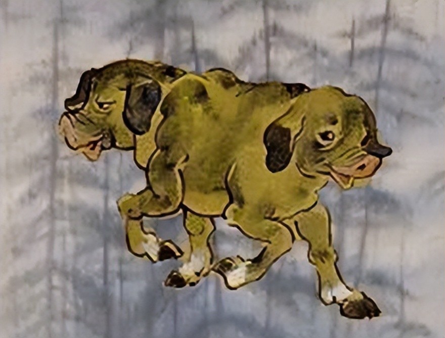 屏蓬,头犹如猪头般,生两个头,各在一端,意志处处相对,一个脑袋只能控制一对足。