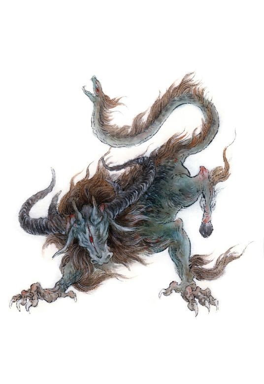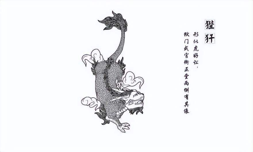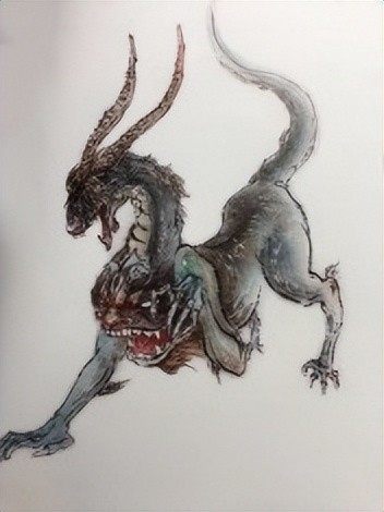 本北方食人之兽,状如犬,传为海中神兽,状如马而有鳞,口中喷火,骘猛异常,食龙脑。其说多见于宋以后。