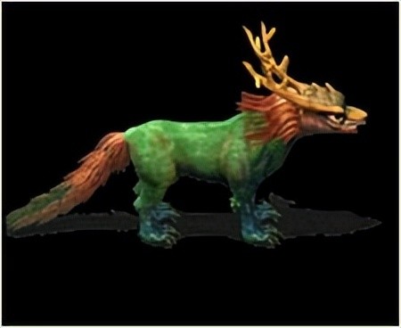 《山海经·西次三经》四皇移位,天降赤心。逐天下,服四兽,然者“狰”也。“狰”者,上古蛮荒之神兽,出于钟山,阴烛之鼻息,日形于型,尾羽,腰生翅,首四角,琉璃眼,赤皮,生黑络。诶静伏于山间,首击石,“狰狰”之鸣,故名“狰”。