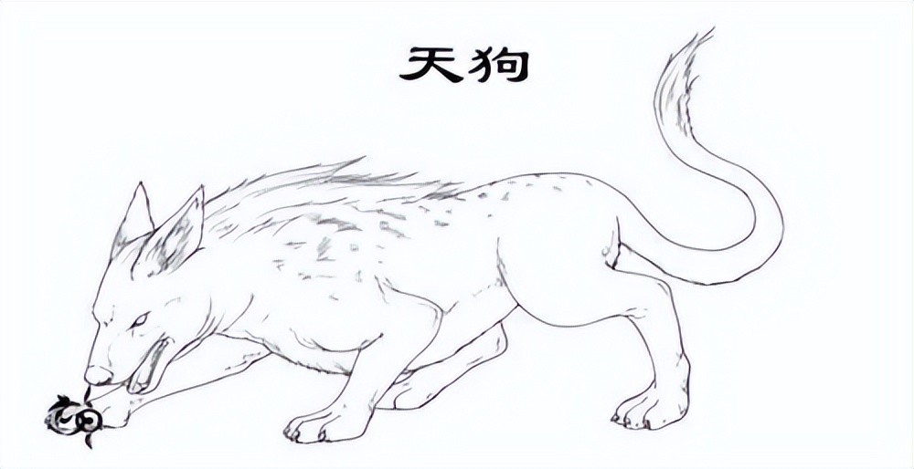 由于古代中国的人缺乏天文学知识,便把日食、月食现象说成是“天狗吃太阳”或“天狗吃月亮”。该现象出现时,人们会敲锣打鼓放鞭炮来吓走天狗。