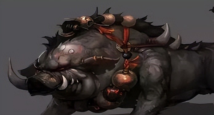 据《神异经》记载,梼杌是生活在偏远西方的怪物,它体格像老虎而毛类犬,毛很长,脸有点像人,腿有点像老虎,嘴巴长有像野猪一样的獠牙,尾长丈八尺,在西方称霸,能斗不退。而“梼杌”,较早见于《左传·文公十八年》,原文是:颛顼有不才子,不可教训,不知话言,告之则顽,舍之则嚚,傲狠明德,以乱天常,天下之民谓之梼杌。
