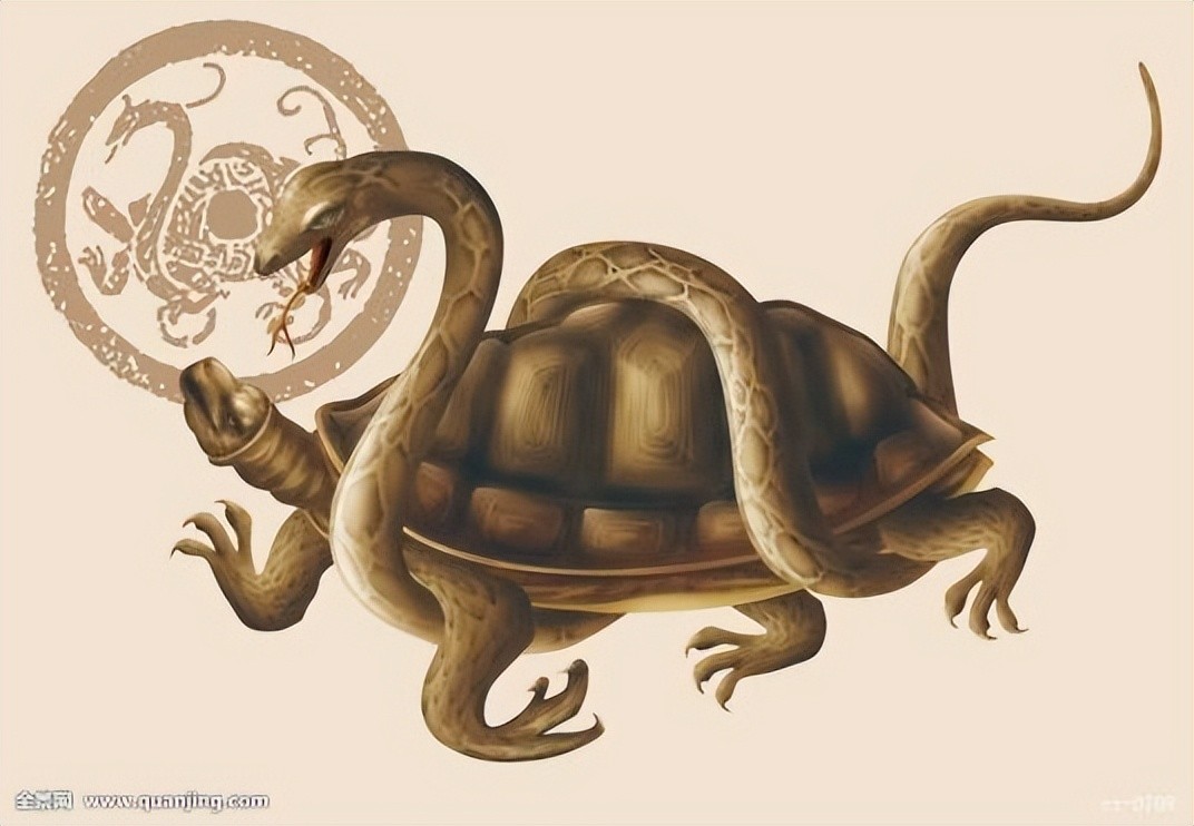 玄武是一种由龟和蛇组合成的一种灵物。玄武的本意就是玄冥,武、冥古音是相通的。玄,是黑的意思;冥,就是阴的意思。