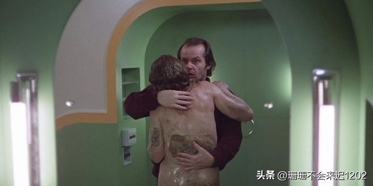 在一个可怕的场景中,杰克托伦斯(杰克尼科尔森饰)发现他所拥抱的幽灵女人已经从一个美丽的年轻女孩变成了一个衰老的老妇人。