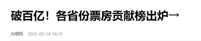 信息来源:光明网--破百亿!各省份票房贡献榜出炉→2025-02-14