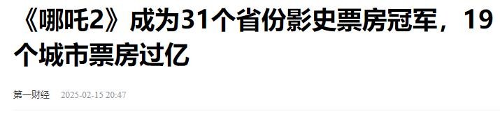 信息来源:第一财经--破百亿!各省份票房贡献榜出炉→2025-02-14