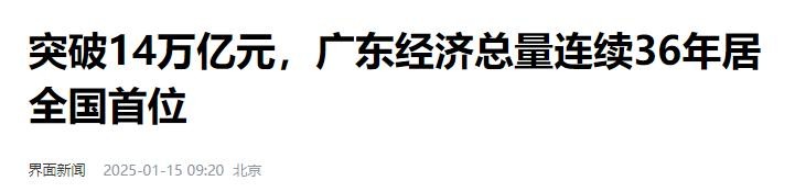 信息来源:界面新闻--突破14万亿元,广东经济总量连续36年居全国首位--2025-01-15