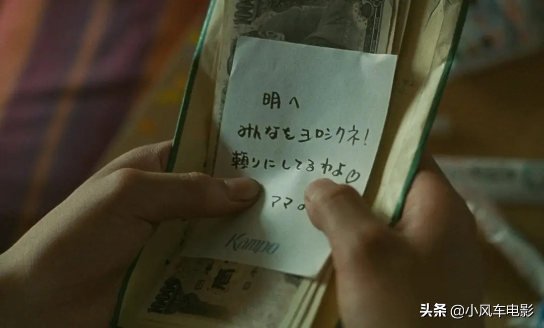 他先找了在开出租车的小妹的爸爸,没有要到钱,又跑到游戏厅找卖盒饭的爸爸,他说自己女朋友把他的信用卡刷光了,他要努力还钱,他给了哥哥5000日元,说孩子不是他的,以后都不要再来找他了。