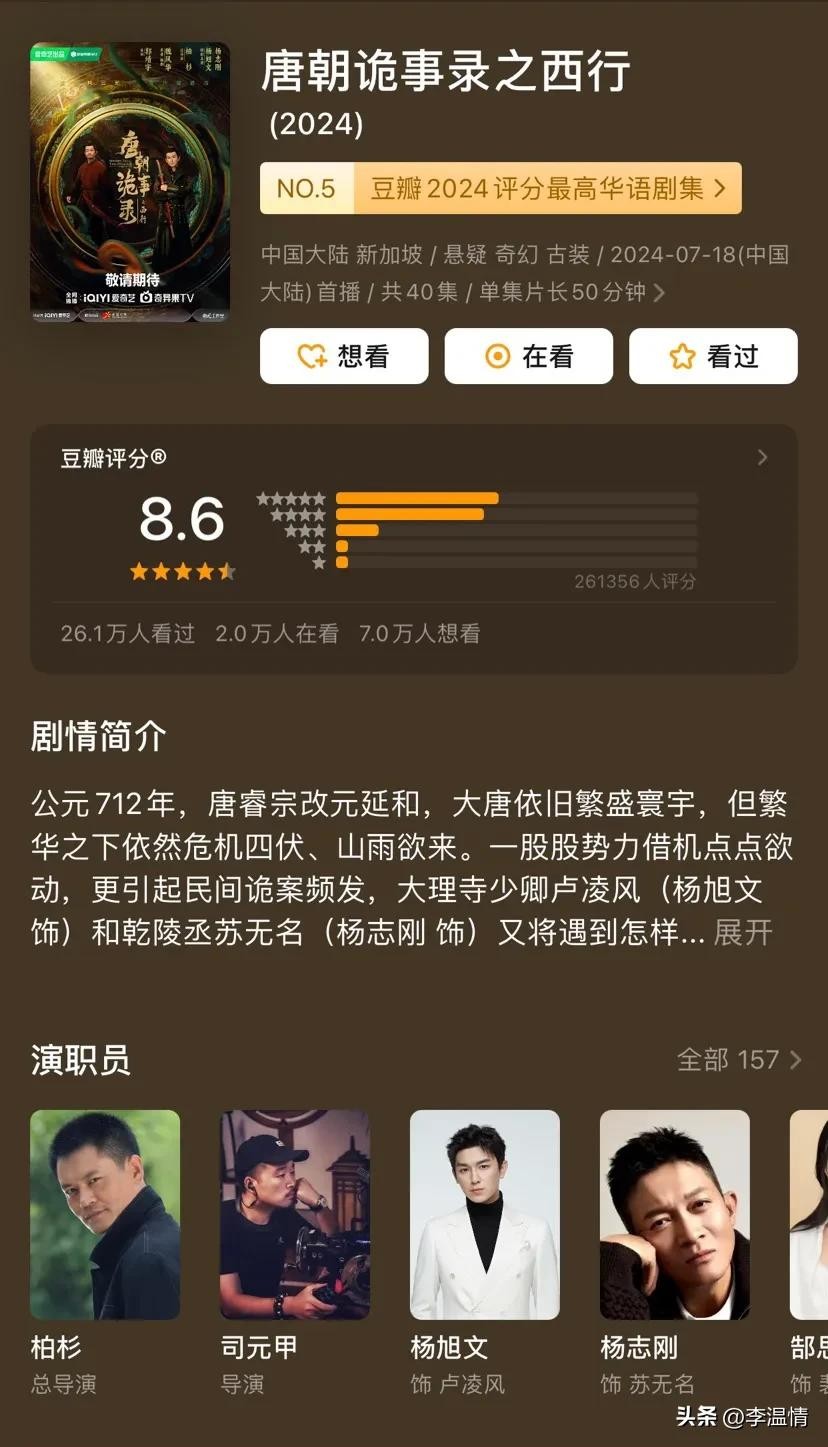 8.6分的《唐朝诡事录之西行》延续前作奇幻悬疑风格,借妖鬼故事来窥视人性,其服化道和群演细节被赞为“古装剧的珠穆朗玛峰”。同样8.6分的《日光之城》则是西藏当代都市生活剧,聚焦拉萨青年的梦想和代际关系,生活流叙事和文化呈现清新自然。