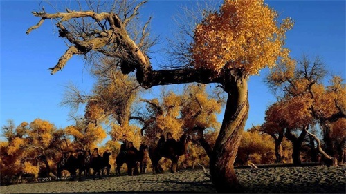 胡杨:世界上最古老的一种杨树,有“生而不死一千年,死而不倒一千年,倒而不朽一千年”的说法。