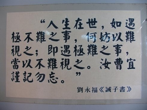 故居里的刘永福纪念馆内陈列着不少珍贵文物和图文资料,展现了刘永福跌宕起伏的一生。刘永福出生于贫苦农民家庭,在而立之年崛起,创建并领导黑旗军。1883年,刘永福率黑旗军参加中法战争,屡次大败法军。甲午战争期间,刘永福奉命赴台抗日,演绎了一曲舍命保台可歌可泣的英雄赞歌。