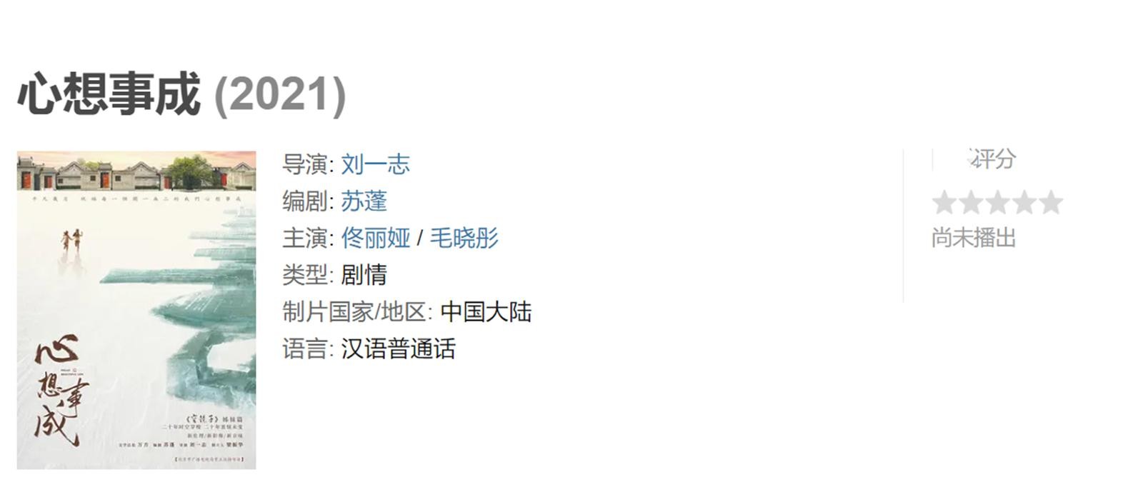 在该剧热播之际,佟丽娅又有一部新剧即将要来了,该剧叫《心想事成》。