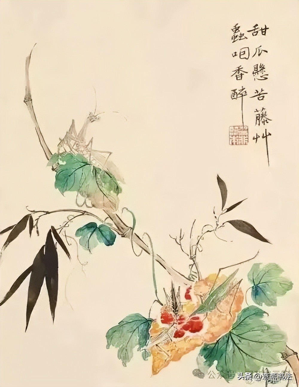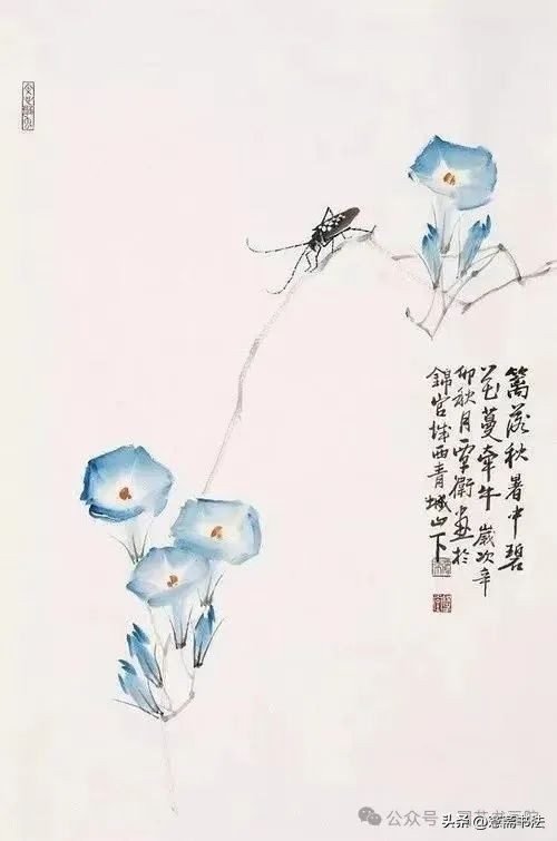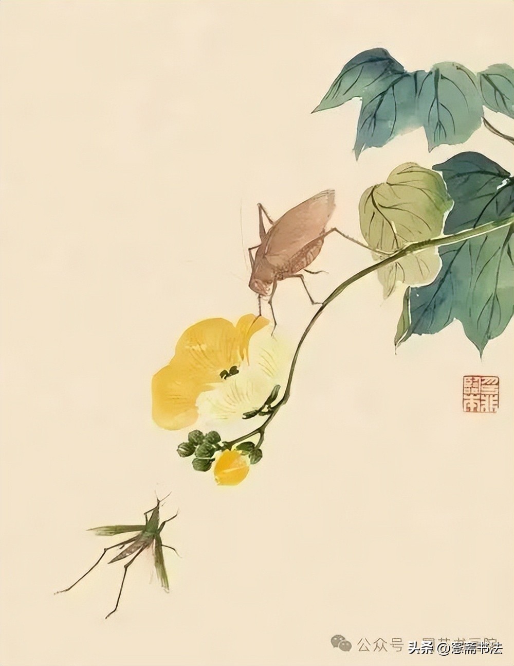 3、工写结合风格:近现代花鸟画家还探索出了工写结合的风格。这种风格将工笔的细腻与写意的豪放相结合,使画面既有工笔的精致细腻,又有写意的笔墨韵味。例如齐白石的花鸟画,在大写意的花卉上配上精细的虫蝶,形成了独特的艺术风格。
