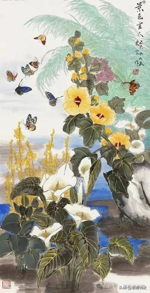 3、时代反映方面:近现代花鸟画家的作品反映了时代的变化和社会的发展。他们通过对花鸟的描绘,表达了对自然的热爱、对生活的赞美以及对时代的思考,使花鸟画具有了时代的精神内涵。