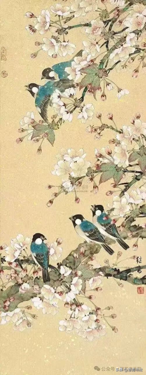 4、教育推广方面:近现代出现了许多优秀的花鸟画家和美术教育家,他们通过教学和创作,培养了一大批优秀的花鸟画人才,为花鸟画的传承和发展做出了重要贡献。同时,他们的作品也通过展览、出版等方式得到了广泛的传播,提高了花鸟画的社会影响力。
