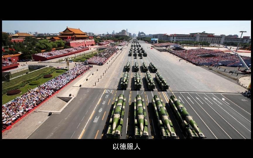 捍卫和平需要拥有比暴徒更强大的力量,三位一体的核打击力量,一小时打遍天下的高超音速,制霸场域的电磁,海洋的王者核动力航空母舰,末日审判者战略核潜艇,如此种种。今日,共和国不惧任何对手,足以御敌于国门之外,无论身处何方,祖国已能接自己的人民回家。
