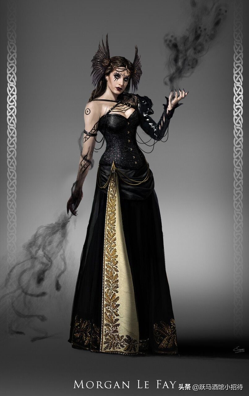 摩根·勒·菲(Morgan Le Fay)是一名法国女巫,也是亚瑟王同母异父的姐姐,她和亚瑟之间私通有过一个私生子莫德雷德。而莫德雷德的后人中又有一个叫做萨拉·休斯的女巫,萨拉·休斯就是与魔鬼阿兹尔订下契约,生下了地狱男爵的女人,具体有关红小子的身世可以去看之前我的一篇文章。
