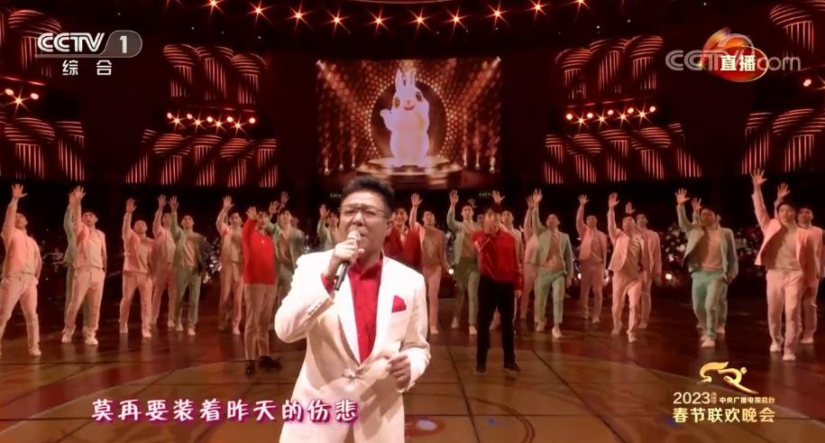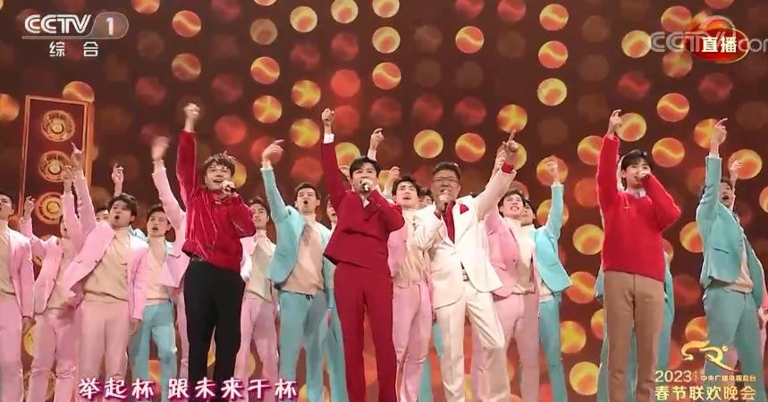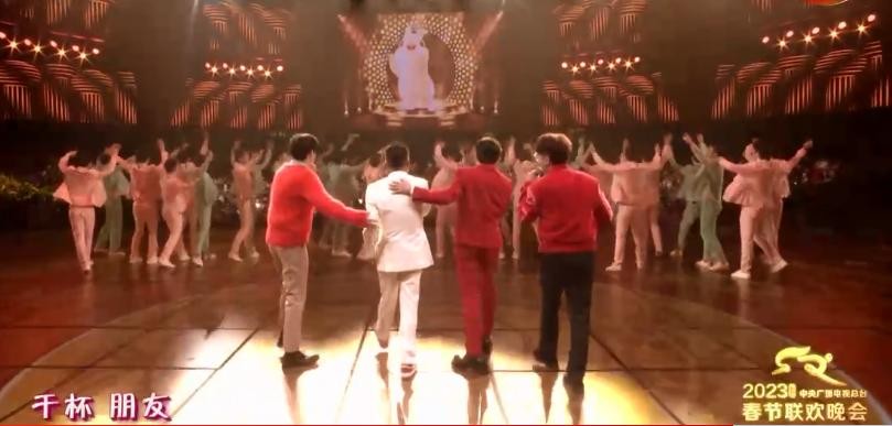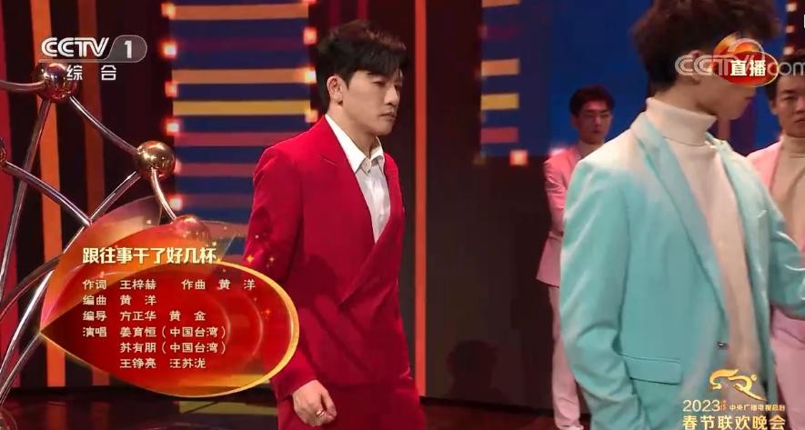这首歌的结尾,在大陆流传非常广的《跟往事干杯》响起,已经22年没在春晚出现的姜育恒出现,全场掌声。