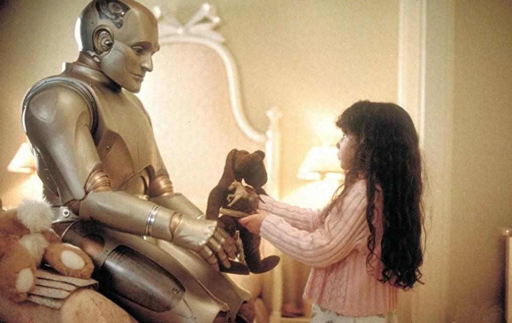 库布里克与斯皮尔伯格联手献上的这部《人工智能》,一直被奉为科幻片中的经典,多少人为了机器人男孩David对母亲经历沧海桑田不变的爱和执着所动容。故事发生在21世纪中期,开头比较俗套:由于温室效应,南北极冰川融化,地球上很多城市被淹没。此时,人类科技已经高度发达,人工智能就是人类发明出来用以应对恶劣自然环境和资源匮乏的科技手段之一。一对夫妻的莫妮卡和亨利的儿子马丁重病不醒,生命危在旦夕,于是在没有特效药治疗的情况下将马丁冷冻了起来……