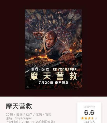 《摩天营救》7月20日上映,目前累计票房4.01亿,这部电影豆瓣评分6.6分,无论是票房还是口碑,《摩天营救》都略低于《邪不压正》和《我不是药神》。这样的成绩,中规中矩,就像是《摩天大楼》这部电影本身,既不让人惊艳,也不让人厌烦。