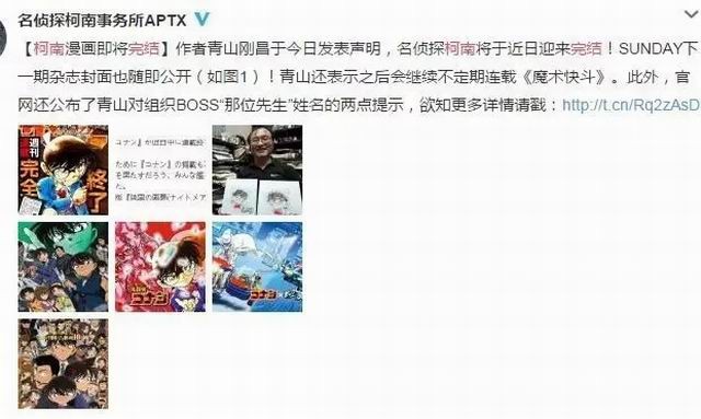 青山老头还表示,虽然柯南终将完结,但是会不定期连载《魔术快斗》(名侦探柯南姊妹篇)。
