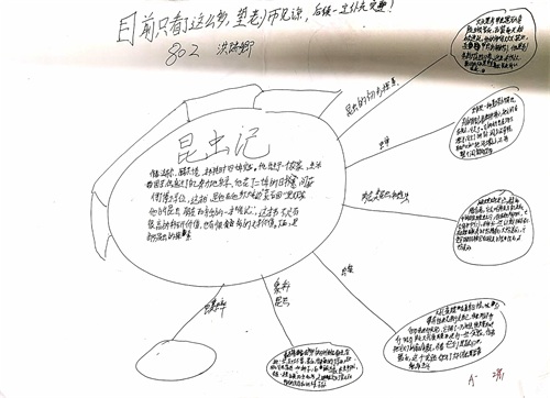 经过前几周的阅读和几个小组同学的努力,802班关于《昆虫记》思维导图第一波作品亮相了。每一个孩子都在用自己的创意感受着作品的科学精神和生命体验,他们用自己的生命体验与作者的思想在互动共舞,稚嫩的笔触也不乏有深刻的见解,不甚漂亮的文字中却不乏洋溢着对阅读的感悟。
