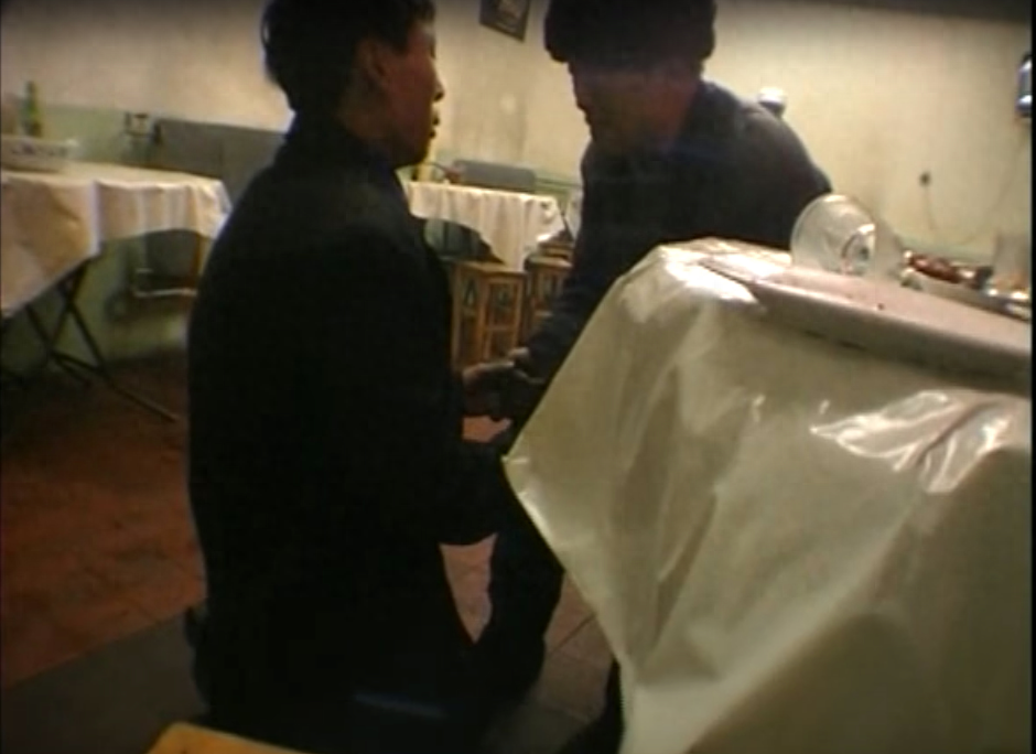 王兵的镜头不仅对准一线工人,同样也对准了领导层,在千禧新年聚餐上,每个人都发言许愿,大家的愿望不仅出奇一致,无比朴实,那就是希望明年有活干,人人有饭吃。最后大伙起哄哄希望书记能够致辞说两句,虽然都知道书记的话充其量也只是鼓励,起不到什么实质作用,但哪怕是鼓励,也能给不安的人心带来一丝安抚,只见书记举起酒杯说了句:今日有酒今日醉。