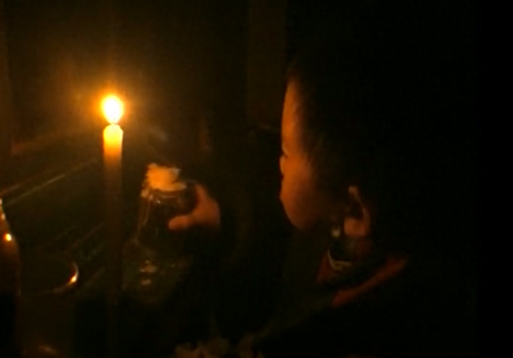 断电之后,蜡烛和煤油灯成了仅有的照明工具,一个小朋友孤独的玩着手里的蜡烛,不停的重复着点燃,吹灭,再点燃,再吹灭的过程。在黑暗的环境里,蜡烛是唯一的光亮,如同绝境中的希望,只不过它太微小了,而且扑朔迷离。