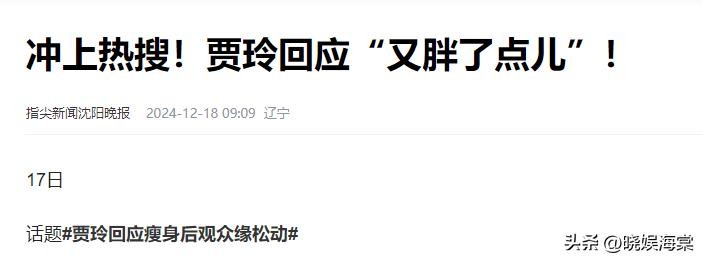 指尖新闻沈阳晚报2024-12-18 冲上热搜!贾玲回应“又胖了点儿”!