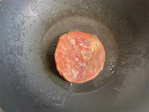 2:锅内留底油,放入一片牛排小火煎至两面金黄盛出。