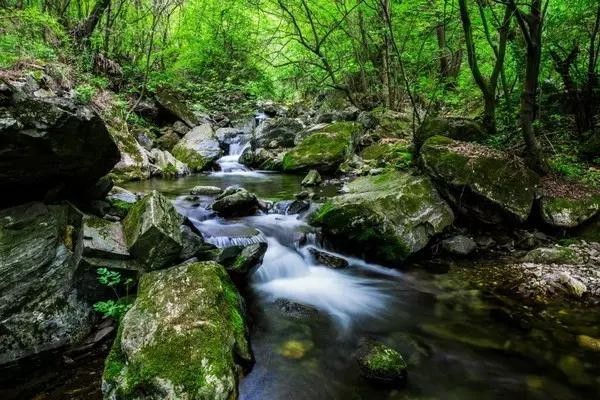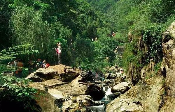 一路前行,随处可见绿潭清瀑,小的如晶亮细线,大的如云织匹练,低的如水越石阶,高的如飞流直下,潺潺水声不绝于耳。沟里的温度较低,空气十分的好,深呼吸一下,连鼻子里都觉得煞是清凉。