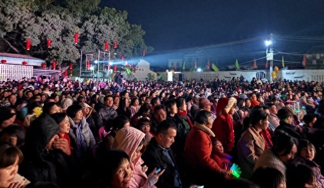 今年大年初一,潮州市饶平县新圩镇西山村“村晚”火热开场,台下观众人山人海。受访者供图
