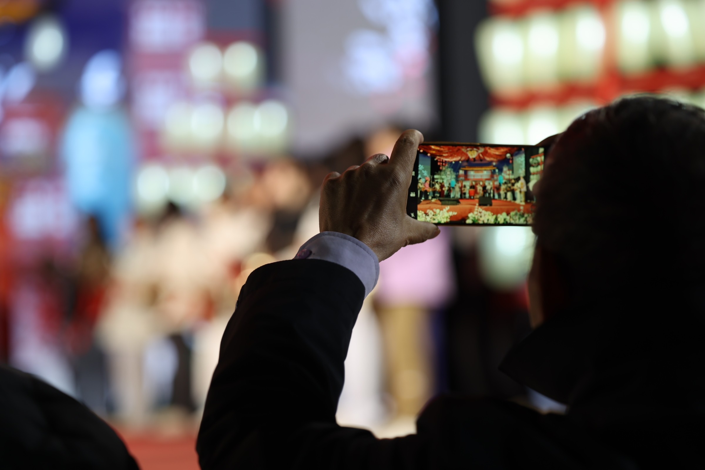 今年大年初一,潮州市饶平县新圩镇西山村“村晚”火热开场。图为彩排现场观众用手机记录。受访者供图