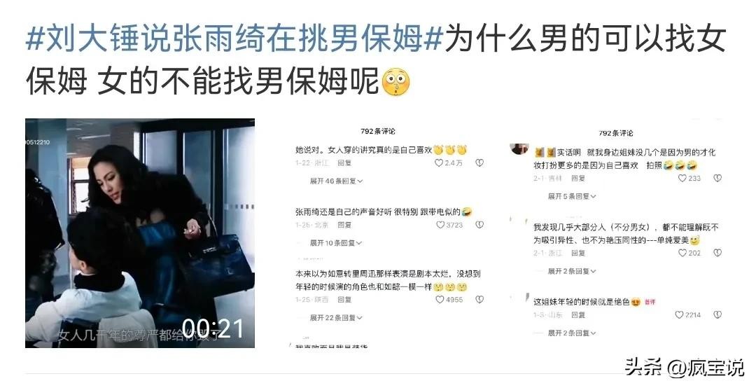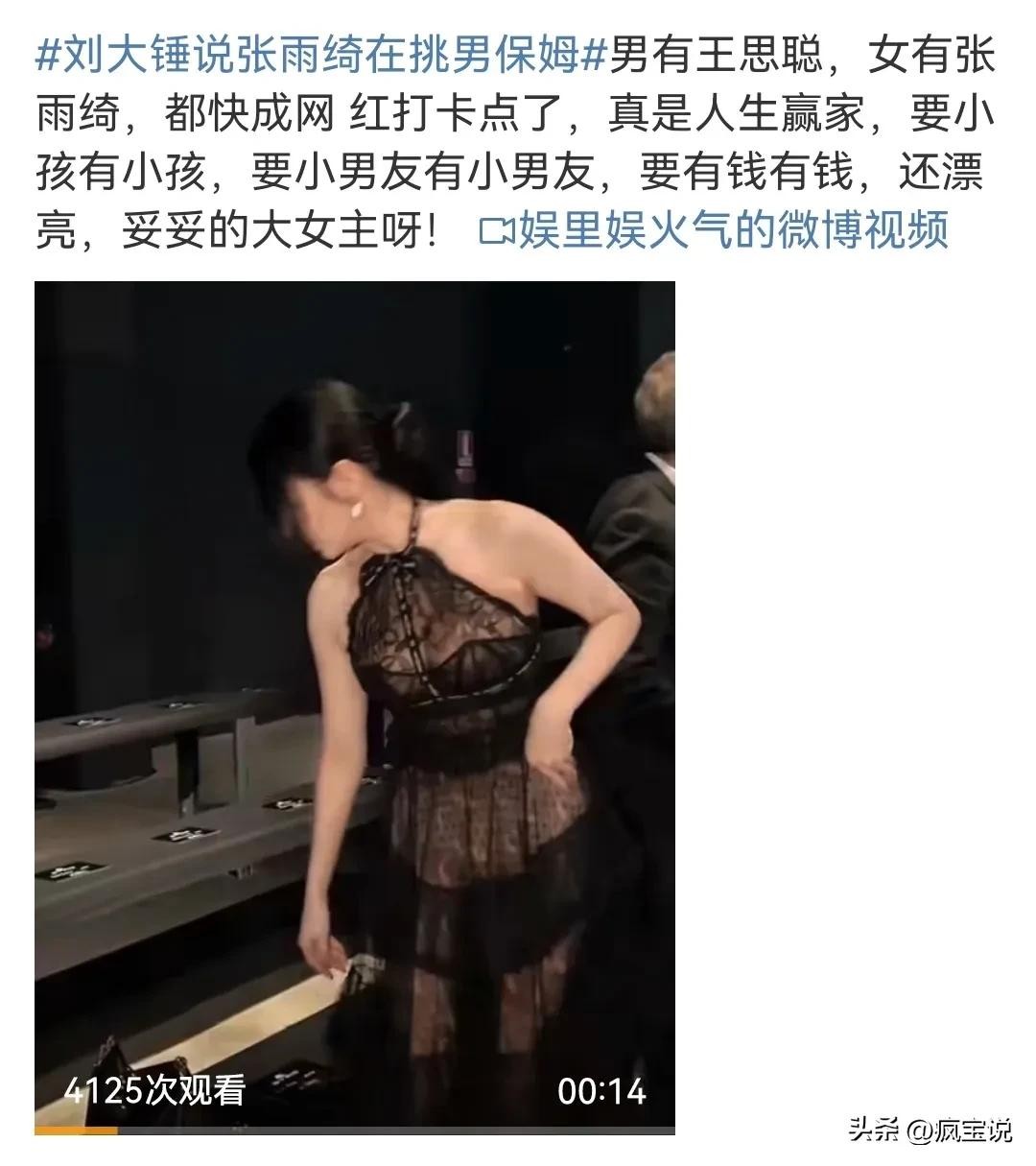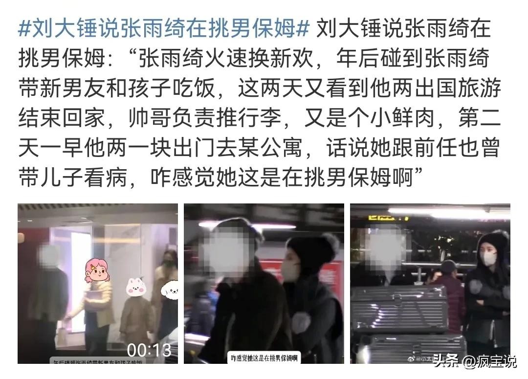 刘大锤称张雨绮在换男保姆,开玩笑有钱有魅力就算是换个男保姆也挨不着任何人,而且就只允许男人换女保姆嘛