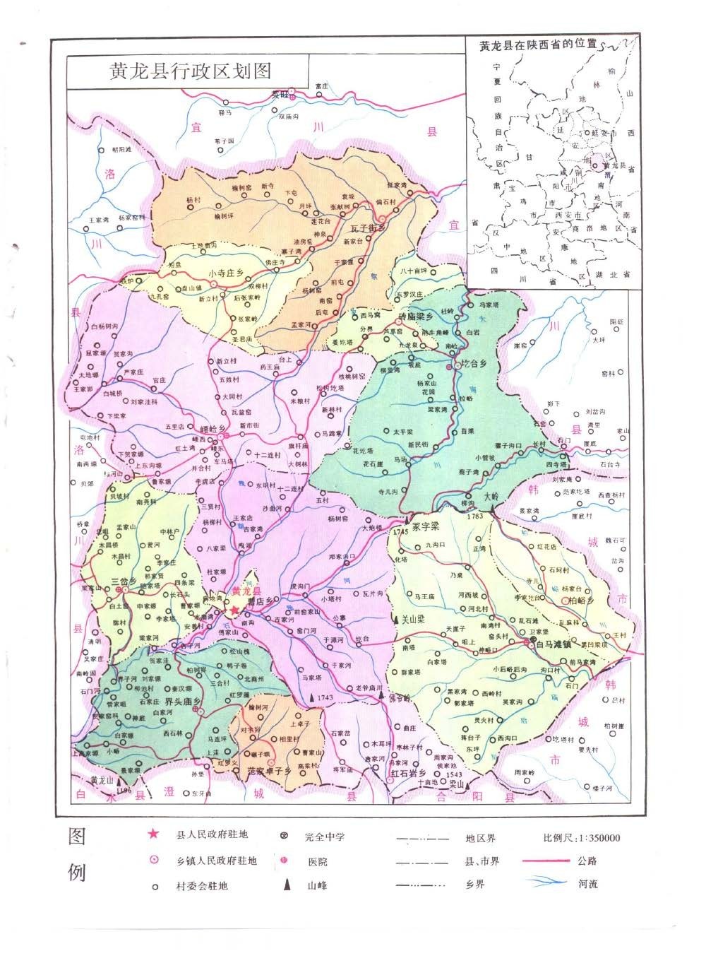 1990年底,黄龙县共辖13个乡镇,111个行政村,831个自然村,其中296个自然村已无人居住。